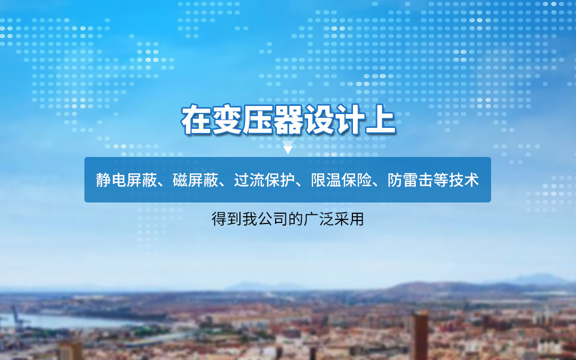 本公司憑借變壓器專業技術和設備優勢,致力于研制開發和生產各類高、新、精變壓器產品,在變壓器設計上廣泛采用靜電屏蔽、磁屏蔽、過流保護、限溫保險、防雷擊等技術,為我國航天工業、國防工業、醫療科技,設計生產一系列變壓器新產品。